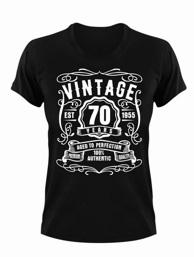 70 Year Old Birthday T-shirt Est Born in 1955 Vintage Aged to Perfection