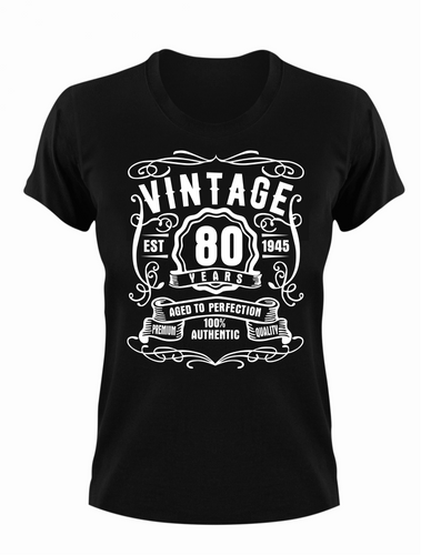 80 Year Old Birthday T-shirt Est Born in 1945 Vintage Aged to Perfection