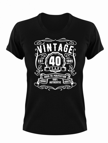 40 Year Old Birthday T-shirt Est Born in 1985 Vintage Aged to Perfection