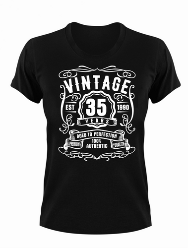 35 Year Old Birthday T-shirt Est Born in 1990 Vintage Aged to Perfection