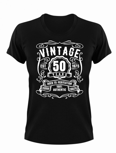 50 Year Old Birthday T-shirt Est Born in 1975 Vintage Aged to Perfection